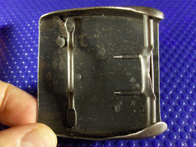 Altra caratteristica "anomala" e' il sistema di regolazione della fibbia sul cinturone (post sleeve assembly o prongs): nel tuo caso appare identico ad una fibbia Tedesca mentre negli originali ha delle caratteristiche non riconducibili alla produzione Nazista.