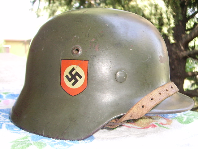 ultima aggiunta nella mia collezione questo M35 biscudo datato 1937 vernice verde pisello liscia, marchio ET62. Cerchione in alluminio senza rinforzi tipico del periodo fino al 1937. Una particolarità* di questo elmetto consiste nel fatto che pur essendo un ET ha applicato la decal tipica degli NS. Ad onor del vero per questo elmo devo ringraziare il caro Alessandro di RbNr...fonte inesauribile di ottimi pezzi...[ciao2]