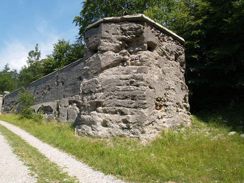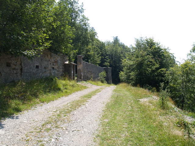 La strada che conduce al grande fabbricato,contornato da un muro di cinta,passa sopra il Passo della Morte e dopo la caserma prosegue oltre le Porte di Ferro,delle quali non rimane traccia.