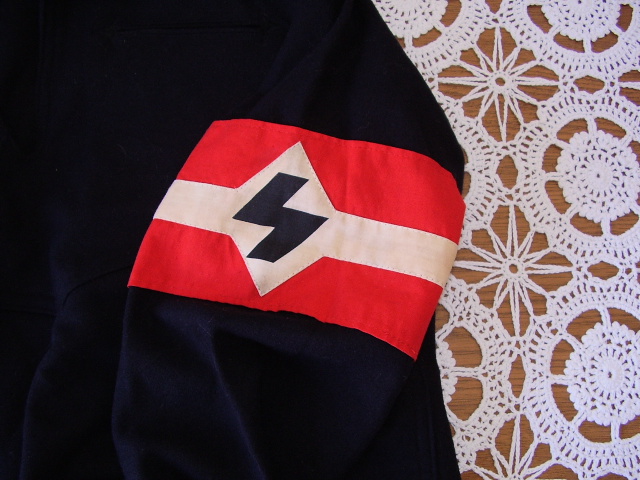 Scusate quel distintivo bianco e blu sulla manica della giacca nell'ultima foto, ne esistono riproduzioni o postbellici???