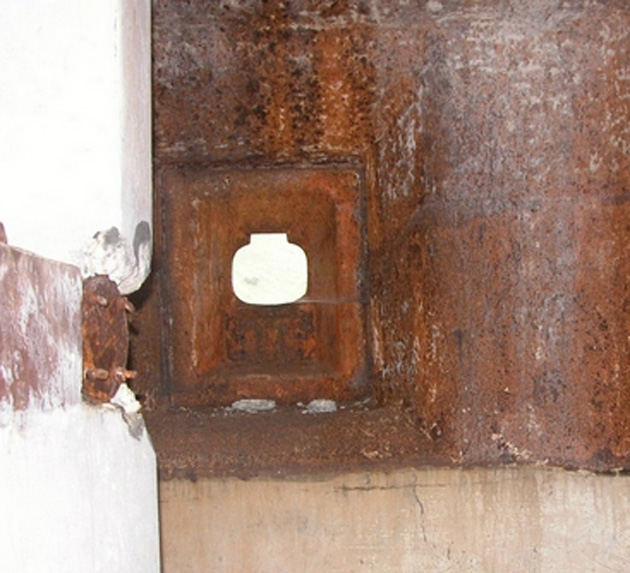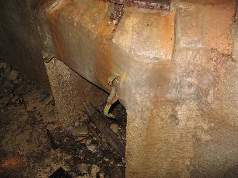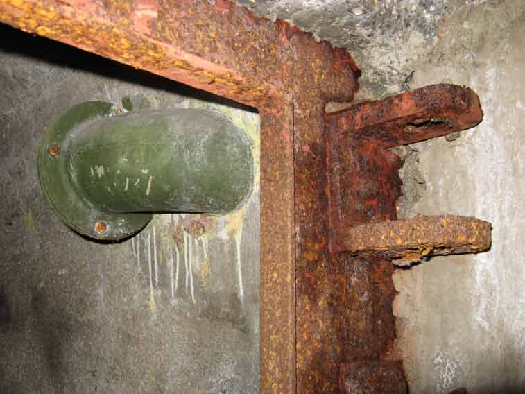 Stipite della porta stagna e resti della tubazione dell'aria rigenerata
