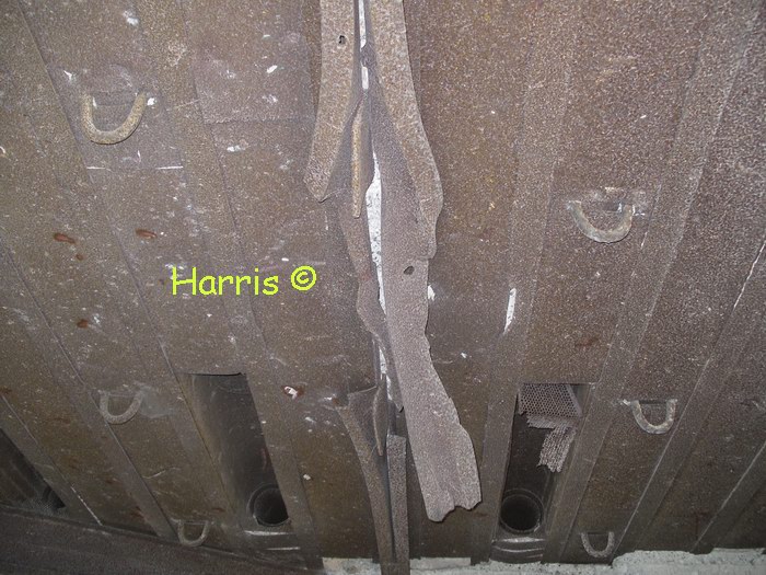 il rivestimento metallico del soffitto, putrelle di rinforzo e golfari per l`incavalcamento del pezzo
