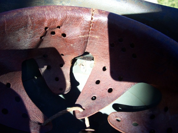 Comunque a giudicare dallo stato dell'imbottitura, dal colore della pelle non scurita per l'uso e dai fori di passaggio del cordoncino di regolazione dell'imbottitura non ovalizzati essendo sprovvisti degli anelli metallici di rinforzo, non sembra che sia stato usato molto, è in ottime condizioni.