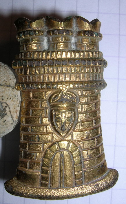 Rappresenta certamente una torre ghibellina, come si evince dalla merlatura a coda di rondine. Dalla quadrettatura del foglio mi sono fatto una idea delle dimensioni, ma se potessi essere più preciso, così come se potessi darci dettagli sulla zona di ritrovamento, potrebbe essere d'aiuto. Parlando con amici ci siamo comunuqe fatti l'idea che il fregio possa essere un ornamento per un baule oppure per il bordo di un tavolino o di una scacchiera. Potrebbe tranquillamente avere un paio di secoli e più, secondo la mia pacata opinione.