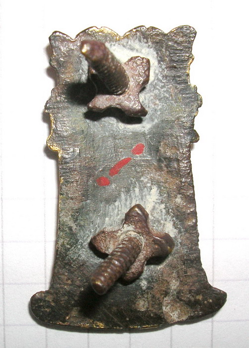 Per come è fatto e per come sono le viti sembrerebbe quasi che fosse montato sul legno, su un mobile, un carro, un affusto di cannone o su una cassa, non su una uniforme o su un copricapo... Possibile?