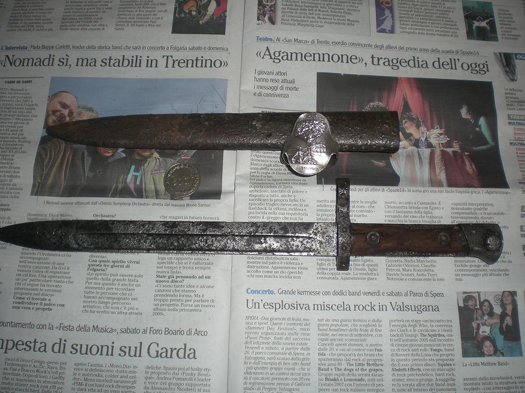 Ed ecco cosa go trova', una bella baionetta AU (la prima che trovo completa )nel suo fodero e con ancora tracce del manico di legno trovata in un posto dove nn si trova piu' neanche una cartuccia ,un colpo di C..O.