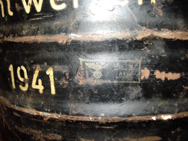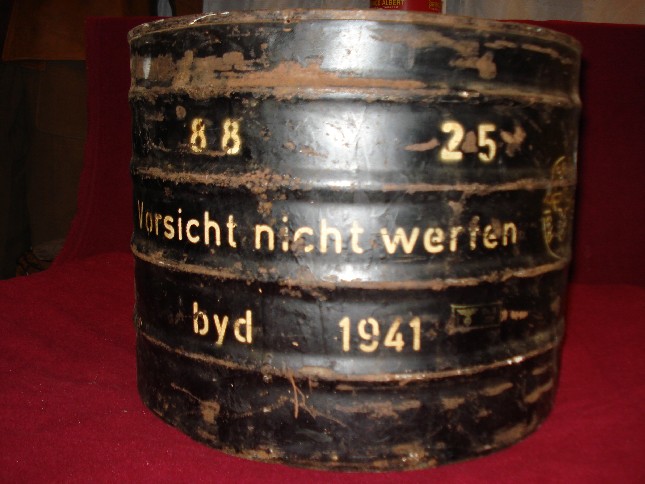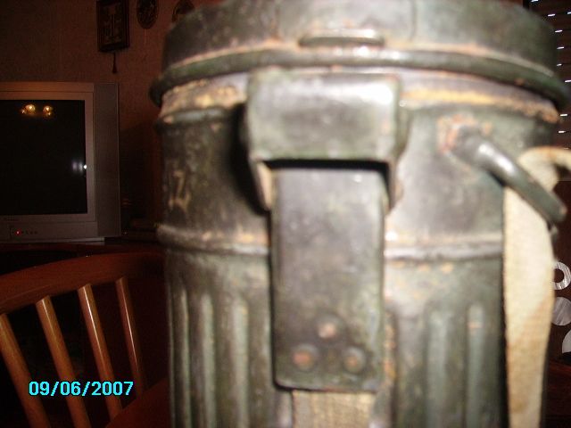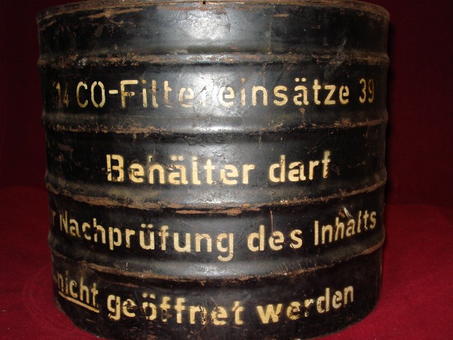 Curioso contenitore in metallo per filtri maschere antigas Tedesche.