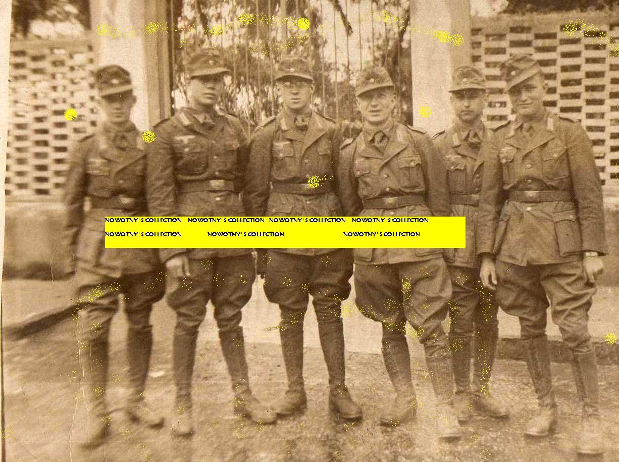 Vorei far notare il viso del soldato della prima foto /ritratto e quella dl soldato in piedi,fotografato nel 45.....triste,disilluso,sciupato,al contrario dell'aitante biondino.....ma guardate proprio l'aitante biondino,ha una particolarità* molto interessante.......ha la giacca come la mia ed un'Adler incredibilmente chiarissima,non vi pare?E che mi dite del timnro posto sul retro della medesima?Qualcuno lo riconosce?