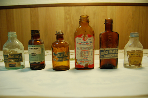 Probalbilmente il liquore veniva distribuito attingendolo da grandi contenitori per poi versarlo nel bicchiere personale di ogni soldato e questo forse spiega la mancanza di bottiglie di tale superalcolico.