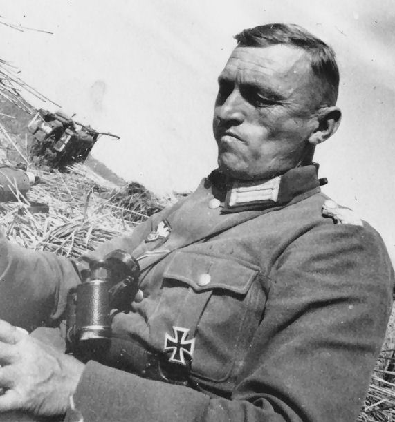Non so perchè, ma mi è sempre piaciuta questa foto di quello che sembrerebbe un maggiore non più molto giovane, ritratto in un momento di riposo poco lontano dalla sua moto. L'uomo apparteneva alla 125 Infanterie Division, come mostrano i simboli divisionali applicati sul retro della moto, e si è guadgnato la Croce di ferro di prima classe. La foto è stata ripresa in Ucraina, nell'estate 1941.