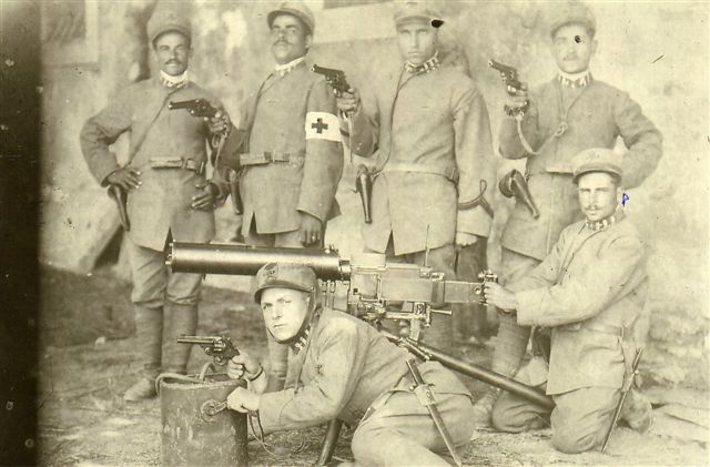 io contribuisco con la foto di un mio parente(il sold. alla mitragliatrice)da notare i revolver.."tettoni"?ciao