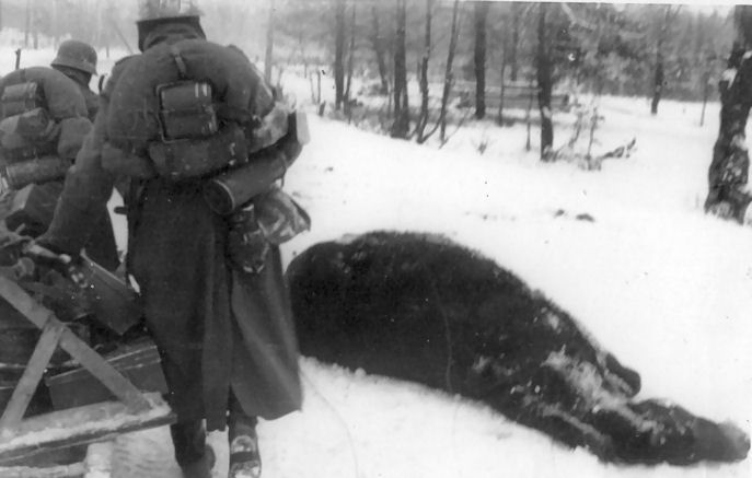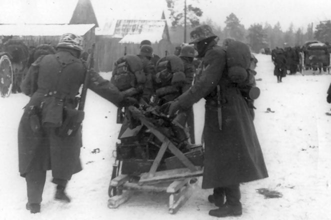Siamo nell'inverno 1941 e la Wehrmacht è stata colta impreparata dalla cattiva stagione. Dovrebbe trattarsi ancora della 125a divisione, ma non ne sono certo.