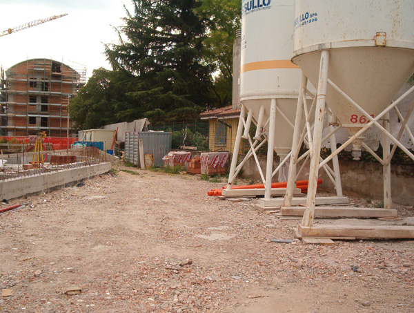 SOTTO I DUE SILOS SINO AL GABBIOTTO IN LAMIERA CI SONO I RESTI DEL MURO FOTOGRAFATO DA FESTUNG E A SINISTRA LA COSTRUZZIONE SOPRA DOVE PRIMA C'ERA IL BUNKER