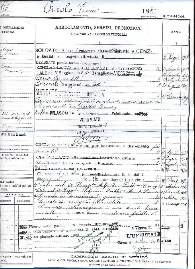 quello del CAPORALE MAGG PIROLO Enrico nato a SOVIZZO(VI) il 25-2-1885