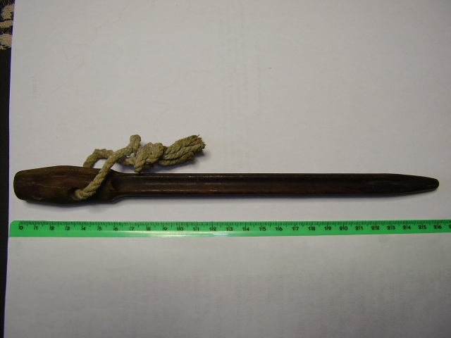 si tratta di un picchetto da tenda  (facente parte di un set individuale di tre pezzi) Tedesco della 2^GM,fatto in bachelite e destinato alle truppe in Afrika,ovviamente successivamente impiegato in tutti i fronti.Normalmente questo genere di picchetti erano prodotti all'inizio in alluminio e con l'andar del tempo in ferro verniciato,un pò come tutte le parti metalliche della buffetteria usata dall'esercito Tedesco.
