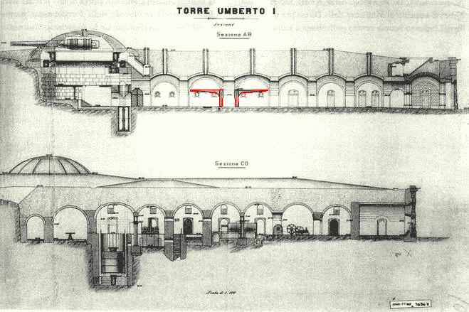mi sto appassionando di fortificazioni militari, ed in particolare di questa magnifica opera militare. Sto cercando di analizzare la pianta di questo edificio in rapporto al funzionamento del cannone. Ad esempio che tipo di funzione avevano le varie 'nicchie' laterali al corridoio, con i relativi "camini" di areazione e i macchinari che sono rappresentati nelle sezioni AB, CD offerte da Harris