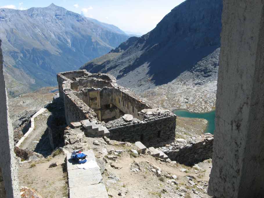 Domenica 9 Settembre 2007.La Caserma Malamot(m.2913),vista dall'Osservatorio del Centro di Fuoco N.6(Caposaldo Malamot)