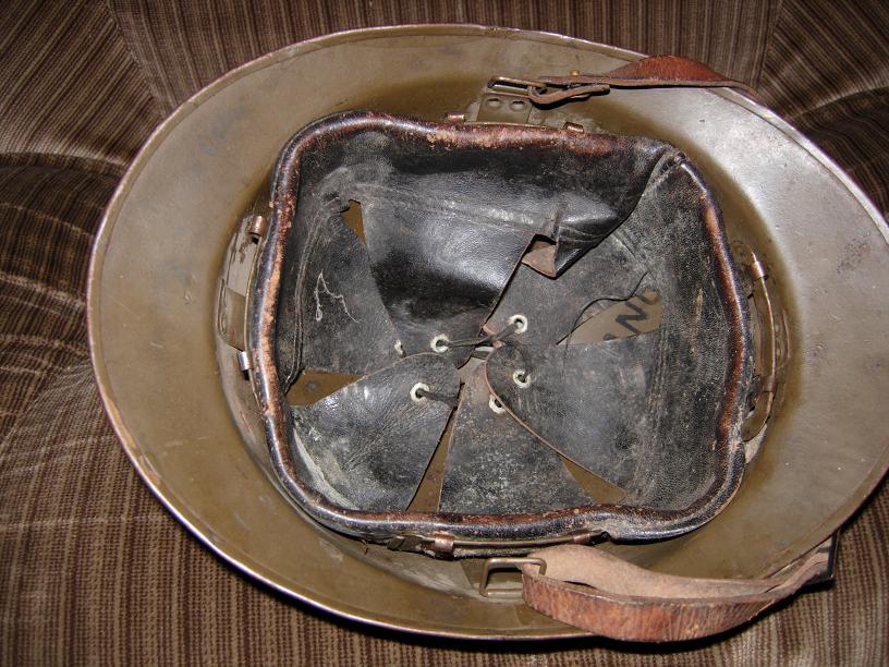 Eccomi ,sono riuscito a fare le foto del mio Adrian M.26,quando lo ho comperato (ero ancora all'inizio)mi era stato spacciato per un M.15 usato dai volontari belgi durante la 1ww e io pollo ci sono caduto come una pera cotta.[|)][|)](Per fortuna lo ho pagato veramente poco per essere comunque completo.)Dopo mi sono informato e ho scoperto che molti venditori "furbini"[:(!]cercano di spacciare i Mod.26 per i Mod.15 e che tanti collezionisti ,la maggior parte alle prime armi, ci cascano pagando oggetti della 2G.M. per oggetti della 1G.M.[incazz]