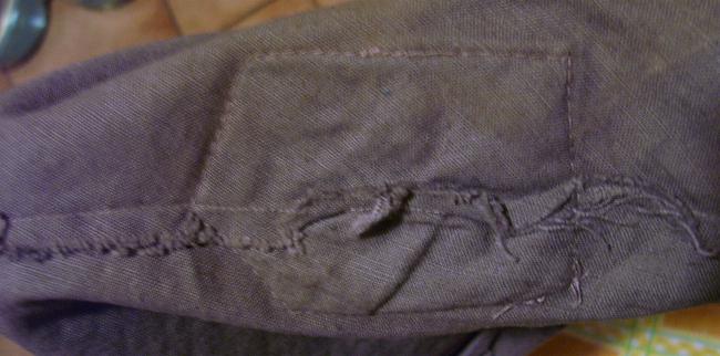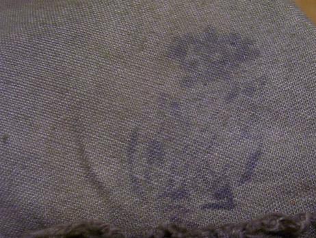 Tentativi di rianimare il paziente che versa in stato comatoso di pre-irreversibilità* [:I]: ho infatti provato a ripetere le foto senza l'uso del flash e già* il colore del telino è più fedele che non nelle precedenti immagini; ho fotografato anche il piccolo marchio interno e pure la parte interna in corrisponcdenza della cucitura del fregio. Encefalo sempre piatto?