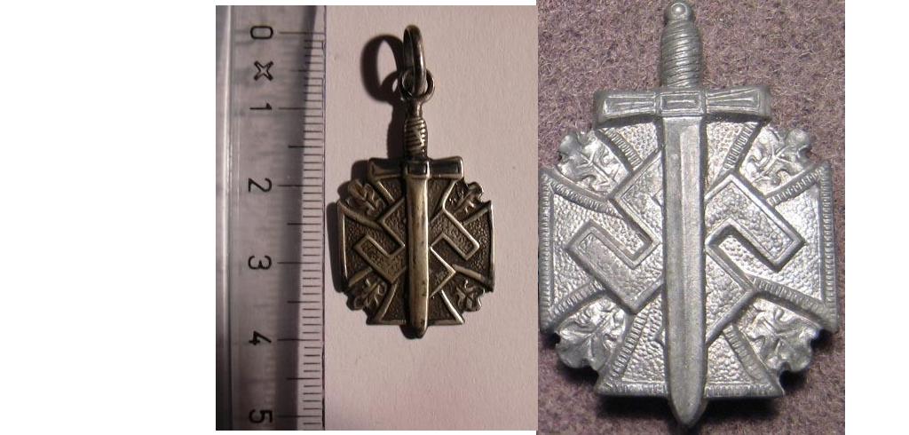 Ciao Waffen,sicuramente il tuo ciondolo è una produzione di fattura privata dei WHW (winterhilfswerk)sono delle decorazioni, atti a raccogliere fondi per il sostegno delle forze armate,viste le dimensioni ed il materiale usato,sicuramente è stato fatto da qualche artigiano o gioiellere del settore,la foto di destra si riferisce appunto,a uno degli innumerevoli WHW .