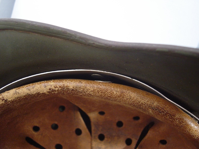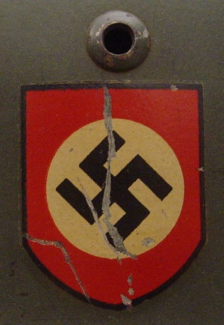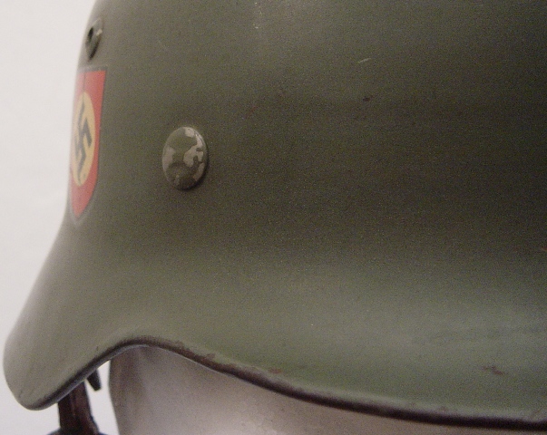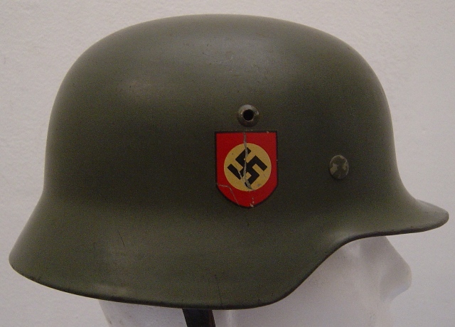Si, è un peccato per lo sfregio sulla decal del partito ma...come ho già* detto, non si può avere tutto!! Comunque per fortuna non mancano parti di fregio e si vede bene la decal nel suo insieme. Poi è oltre il 90% e non mi lamento troppo, soprattutto considerata la penuria di elmi che c'è in giro! Inoltre ho visto varie foto d'epoca con elmetti ovviamente mint e i fregi graffiati! I soldati spesso non erano così attenti all'equipaggiamento come lo siamo noi....