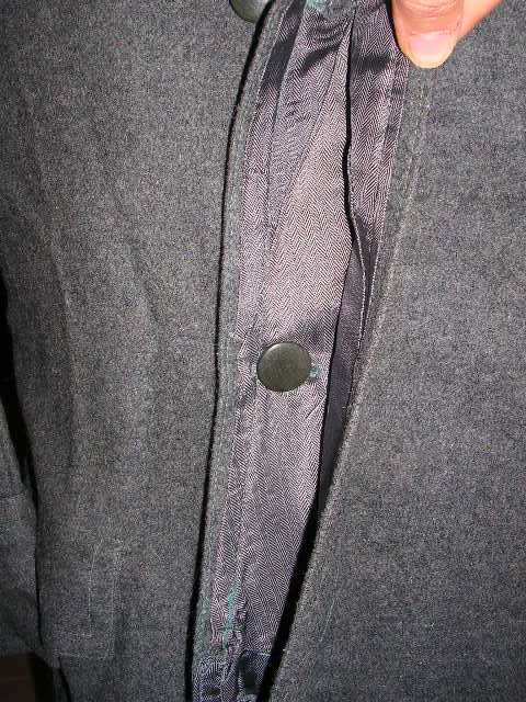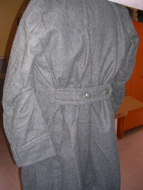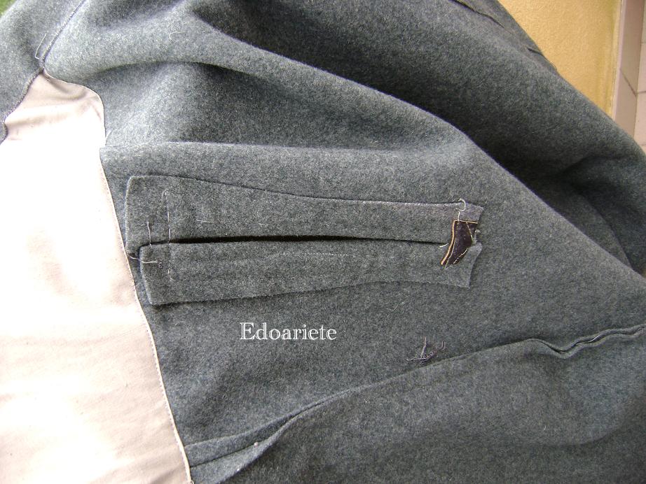 Il cappotto senza tasche pettorali e senza bottoncini ai paramani, per il resto pienamente rispondente alle specifiche. Il filo delle cuciture è un verde chiaro, che "stacca".