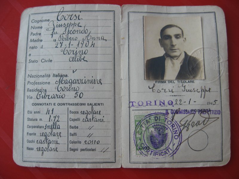 Gustavo Comollo " Pietro " la carta è un falso che egli usava per sfuggire ai controlli della Repubblica e dei tedeschi nei suoi frequenti spostamenti da una formazione all'altra.....Piaciuta la storia???