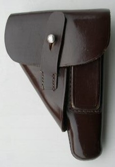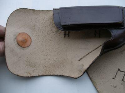 Dunque, ho fatto provare la fondina di sinistra con una '34: ci sta bene, nel senso che pare proprio la sua. Ci sarebbe stata però anche forse una pistola di 2 cm. max più lunga ma non più larga. Questo per il motivo che avevo intuito più sopra e cioè che la fonda è cucita lungo il perimetro per cui la canna non ha agio ad infilarsi fino in fondo, pena la scucitura dei punti.