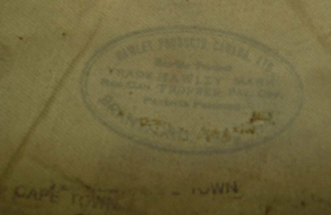 Il nome del legittimo proprietario, S. G. Ellis, e la data: Cape Town 1943.