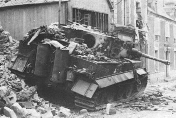 La torretta del Tiger di Wittmann completamente staccata e lontana dal resto del panzer: