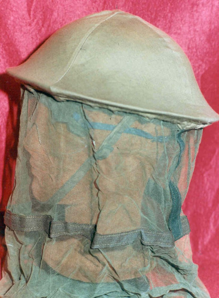 un telino fatto con tela di sacco a due spicchi per l'MK1-1916, purtroppo tarmato:
