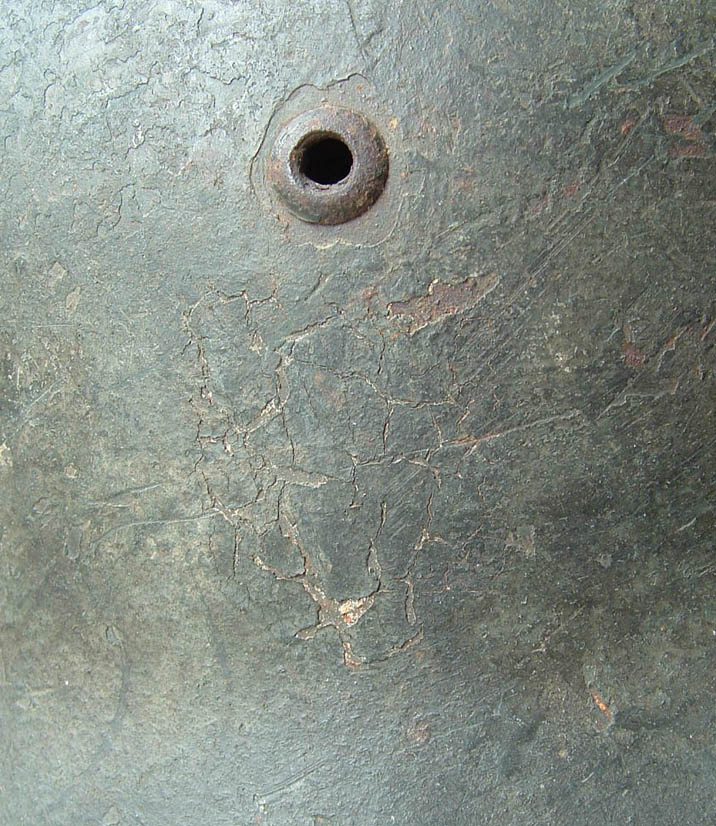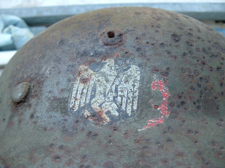 ciao franz, sono molto contento di poter vedere questo elmo veramente raro che ancora riesce a trasmettere fascino pure se rimasto 60 anni sotto terra , addirittura mostra ancora buona parte del particolare colore del 35,ottimo elmo![:P]