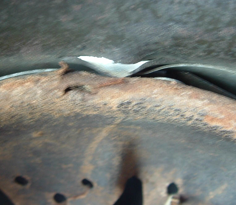 Ciao franz quello danneggiato non saprei da cosa, è stato trovato da me e l'amico in un'ansa dell'Adige (dove ogni tanto andiamo a fare pic-nic) che all'inizio dell'anno a causa della poca pioggia era abbastanza in secca e passeggiando sul greto abbiamo visto spuntare la parte tagliata sembrava un pezzo di ferro qualunque puoi immaginarti quando lo abbiamo sollevato la nostra sorpresa. Ecco questa è la storia di una grande botta di cu....lo.