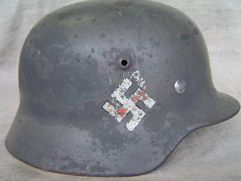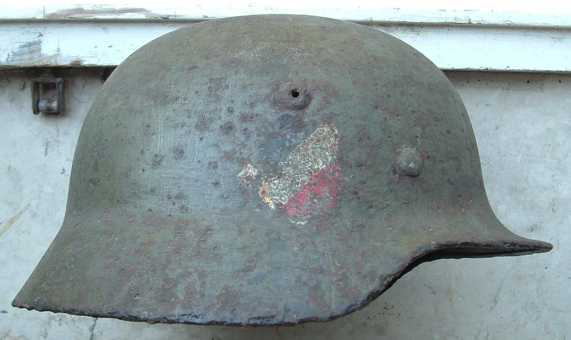 alcune foto ne ho trovate, solo di un paio però.....questo l'ho ceduto tempo fa era di scavo dalla francia un m35 doppia decal verde mela, dei primi caduti tedeschi