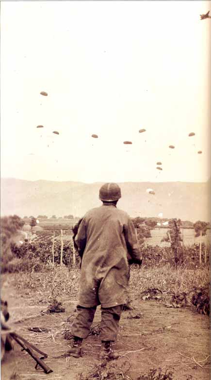 ad aprire il paracadute.Quelli atterrati, si trovarono con