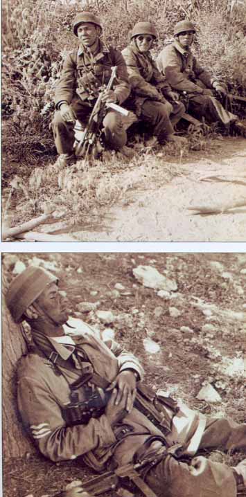 Foto d'epoca (1944) con telini da elmetto realizzati con tela di