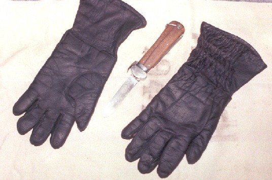 Guanti da lancio 'corti' neri, prima versione, con un pugnale a