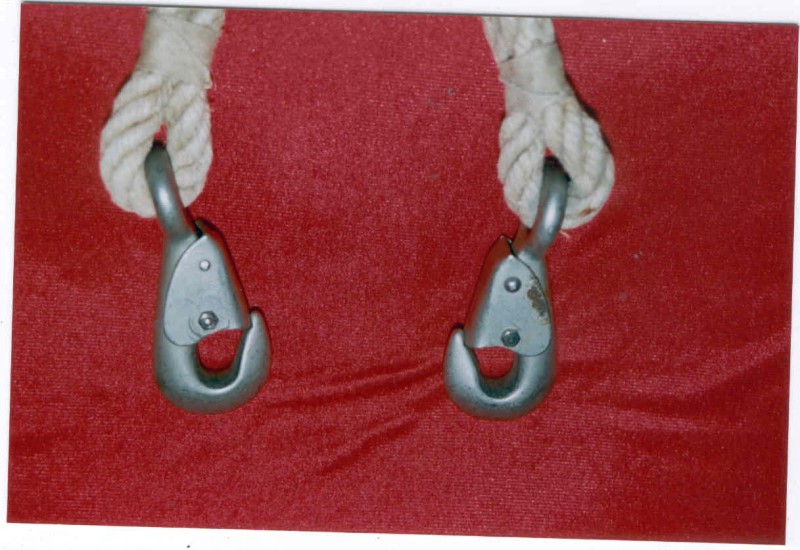 Particolari dei moschettoni laterali, destro e sinistro fissati