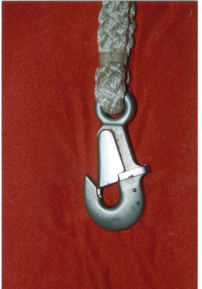 Il moschettone della fune di vincolo, collegata all'aereo.