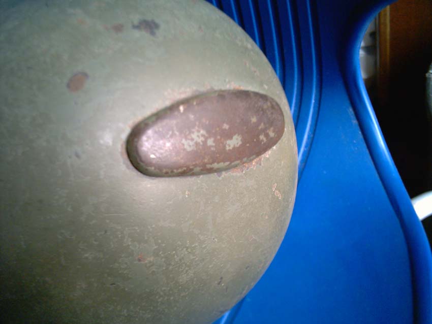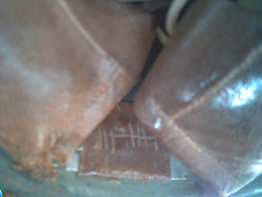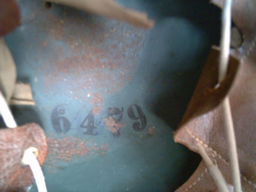 sulla parte posteriore dell'elmetto, all'esterno,erano impresse delle sigle e dei numeri.Proprio sotto il bullone posteriore