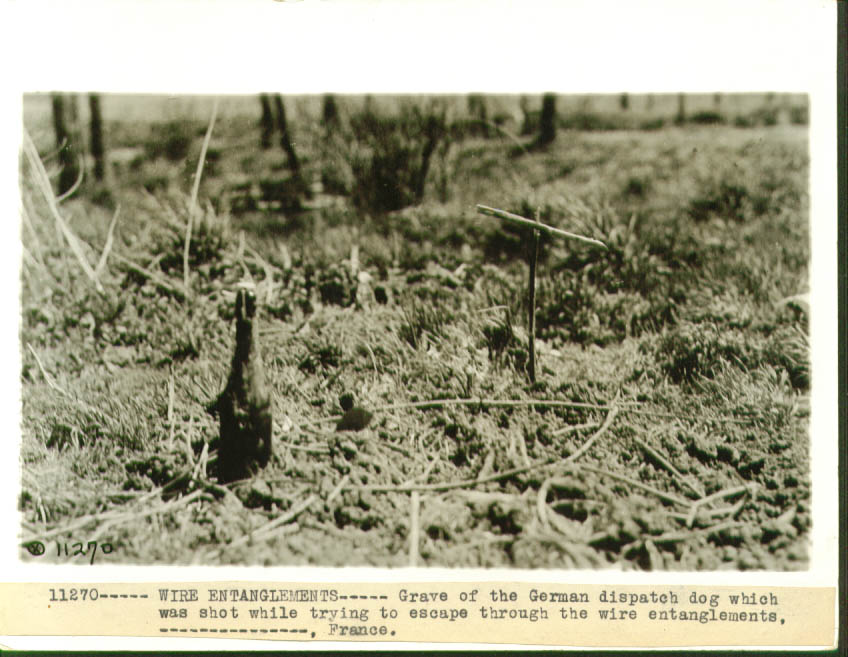 Questa l'ho scaricata qualche anno fa, ma tutte le volte che la guardo mi viene una tristezza infinita. E' la tomba di un cane tedesco preso a fucilate mentre attraversava i reticolati per portare messaggi. Il padrone ha voluto seppellirlo come un cristiano con tanto di croce e candela. A volte viene da chiedersi chi siano veramente gli animali, loro o noi.