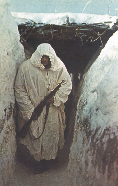 Gli indumenti mimetici prevedevano ingombranti camicioni bianchi che erano più di intralcio che altro.