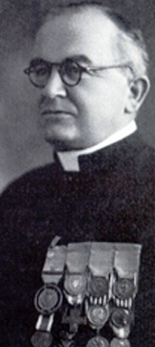 E` un veterano di guerra, è già* stato cappellano in Libia nel 1912, sul Carso è rimasto gravemente ferito guadagnandosi la medaglia d`oro al valor militare.