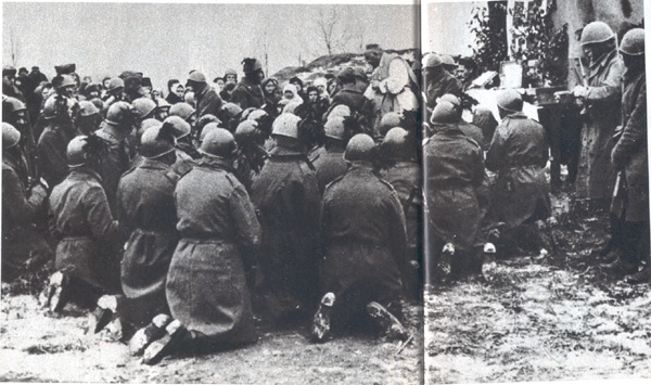 Don Giovanni Mazzoni comunica i Bersaglieri del 3° il giorno di natale 1941 a Rassypnaja. Assieme ai militari italiani partecipano alla funzione anche civili russi.