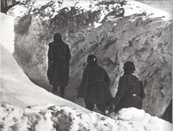 Camminamenti scavati nella neve in una posizione di prima linea sul fronte russo