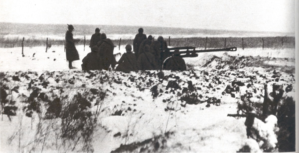 Cannone anticarro in posizione avanzata sul fronte orientale