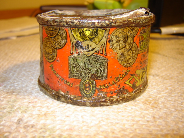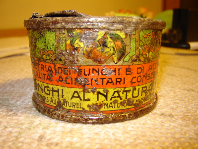 E qua' signori e signore siamo arrivati al TOP!![II]Mah allora,direte voi....sono delle comunissime scatolette di carne......ebbene si' lo sono,comunissime,ma trovarle dopo novant'anni anche con il suo contenuto.....Si,sono ancora sigillate,all'interno probabilmente ce' ancora la carne,o quello che ne rimane.......se un giorno non avro' da dare da mangiare al gatto,beh provero' ad aprirne una eh eh ....
