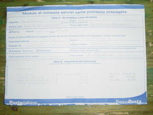 Giancarlo....io l'ho fatto online,sul sito delle Poste Italiane....direttamente dalla mia postePay,a quella indicata in questo thread...la ricevuta cartacea non l'ho...[:(]Citazione: