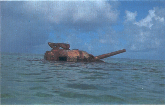 La carcassa di un carro americano colpito durante un tentativo di sbarco