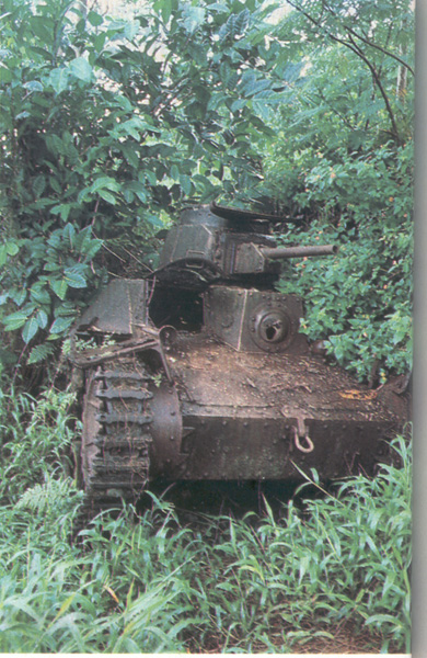 Un piccolo cingolato giapponese immobilizzato mentre avanzava nel folto della vegetazione.
